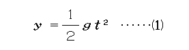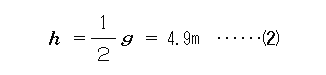 ためしに式(1)にt=1秒を入れてみると、1秒間に落下する距離hは