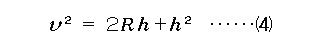 となりますが、Rに比べてhは比較にならないぐらい小さいので、右辺の第二項を無視して、さらにhに式(2)を代入すると次の式が得られます。