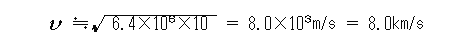 このような速さを第一宇宙速度といいます。この速さを越える速さで打ち出せば、物体は地球を回る人工衛星になるのです。実際の数値を求めてみましょう。R=6400km=6.4×106m、g≒10m/s2ですから
