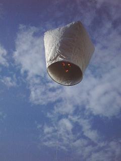 台湾のお祭りで、願い事を書いて飛ばすという熱気球、天燈(テンダン)。YPCでは共同購入で直輸入した。お楽しみ広場会場の中庭で演示実験を行い、ブースで即売した。まだ若干在庫あり。