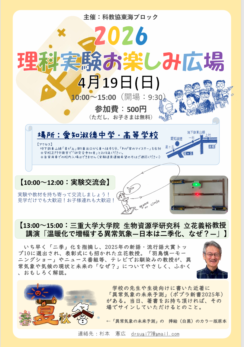 理科実験お楽しみ広場2026のポスターができました!