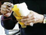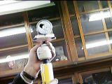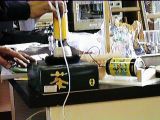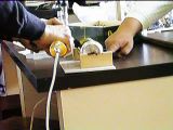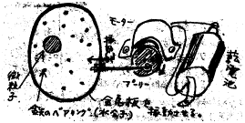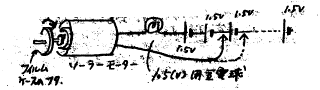 (実験結果)電圧を上げると、モーターの回転数が増加し、モーターが、電流の起電力を打ち消す向きに発電(逆起電力という)するので、電圧を20(V)くらいまで上げても、電球はつきません。モーターを手でとめると瞬時に輝き、球は切れます。逆起電力の威力を示す実験です。