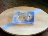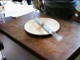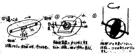 ・慣性モーメント 回転中の容器におもりを並べ、支えをはずすとおもりは中央へ移動。?が大きくなる(スケートのスピンと同じ)