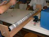 ※ステレオアンプの一方の電流を豆電球に導き、音楽にあわせて点滅するようにしてあったのが、アイデア賞です。