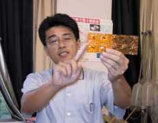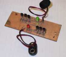 | 静電気極性判定器 (清水さん) 千葉の三門さんの追試です。摩擦電気を近づけると,赤か緑のダイオードが光り, 極性がわかるようになっています。 |