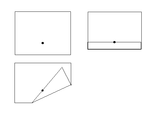 | 紙で2次曲線 (清水さん) 四角の紙に点を書き、右図のように点に接するように何度も折っていきます。たくさん折った折あとを線で書いておくとはっきりします。どんな線が見えるでしょうか。 円でも同じことをやってみましょう。円内に点を書き、この点に接するように円周を折ります。たくさん折ったそのあとは何が見えるでしょう。 |