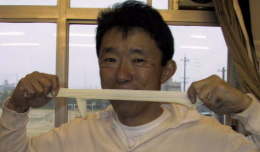 | ゴム手袋の温度変化 (鈴木さん) ゴムを唇にあてたまま急に引くと暖かく感じます。 伸ばしたゴムを唇にあてたまま、急に戻すと今度は冷たく感じます。ゴムの分子の配列が変化するためといわれていますが、見ただけではわかりません。うまい説明の仕方がないでしょうか。 |