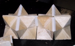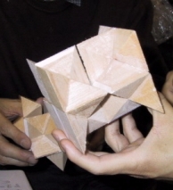 | 吉本キューブ (清水さん) 下のピラミッドのような基本単位をたくさんうまくつなげてやります。右の写真のような様々な形に変形します。形の妙ですね。 ![]() |