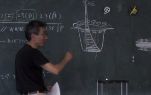 | エントロピーを絵に描けば (飯田さん) 化学反応を決定付ける量のひとつのエントロピーをうまく説明する試み。 熱の入った解説でした。 が、難しすぎてよくわからないとの声も・・・・ |