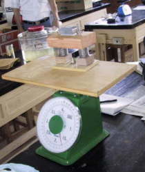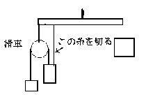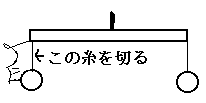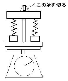 | 重心移動と力 (山岡さん) 天秤と台ばかりでの問題。 それぞれ、糸を切ると天秤や台ばかりの目盛りはどうなりますか。 台ばかりの問題は、体重計の上で、沈み込んだり、伸び上がったりするときのモデルになっています。 |