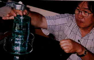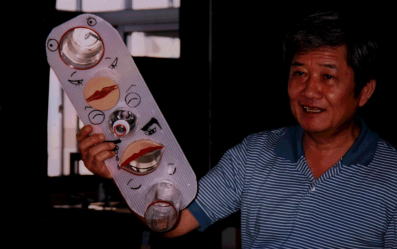 | しゃべるコップ-その2 (清水さん) しゃべるコップの発音をより確かにするために、コップのなかに何かをつめるといいことを発見。 電子装置を使わない、おしゃべりロボットができるかもしれません。 |