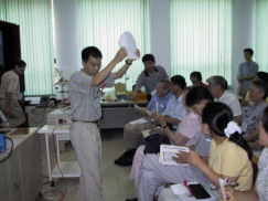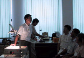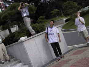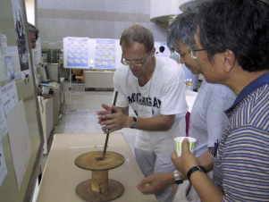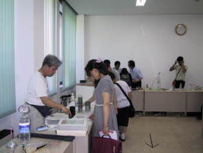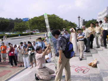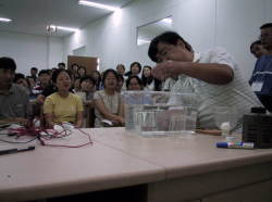 | いたずら猫 所かまわず実験してしまうメンバー。 食事のときも隣の韓国の先生たちを 驚かしていました。 |