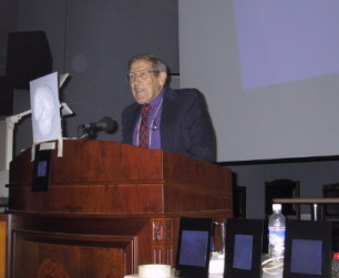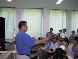 | Thomas D. Rossing さんの講演 音についての実験を交えた楽しい講演でした。 |