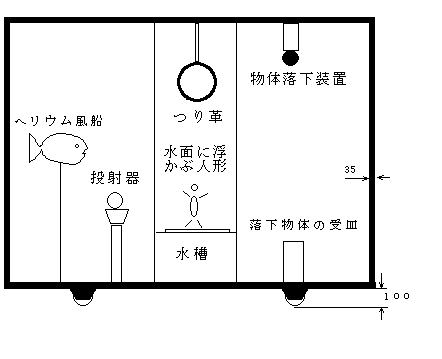 置,落下物体,空き缶,大型水槽型加速度計,ヘリウムガス入り風船