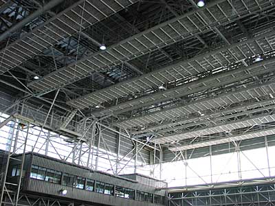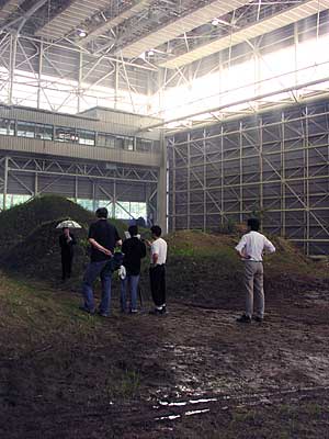 3![]() そこはとても高い天井の、がら〜んとした建物でした。中には土や砂が積まれています。 |