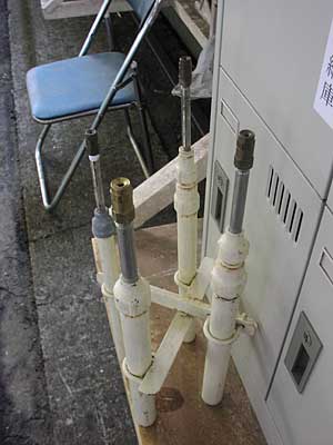5![]() パイプの末端にはこのような4本セットのノズルが付いています。必要な降雨量に応じて、水を出すノズルを替えるのです。 |