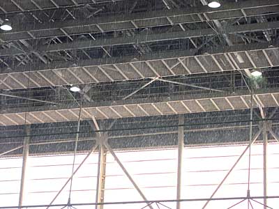 9![]() どんどん雨足が強くなります。観測史上の最高は1時間180ミリオーバーだそうですが、この施設では200ミリまでOK。 |