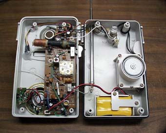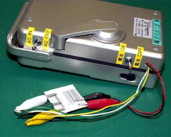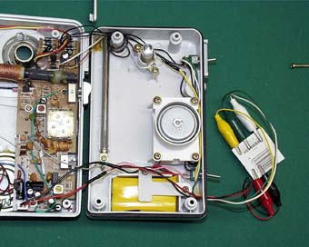 赤黒のリード線はDC。黄・白・緑の線は交流です。DCで4Wの蛍光灯(電池式)、玩具の扇風機が動作します。DC出力は無負荷で6Vくらい、負荷がかると2.4V位です。電池をoffにしてラジオを鳴らすと、充電表示灯が点滅してかなりノイズが入ります。基本的には電池を充電しながらラジオを聞くというのが正しい使い方のようです。