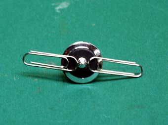 コマの裏にはリング状にマグネットがはめ込んであり、直径方向に着磁されています。(写真2)