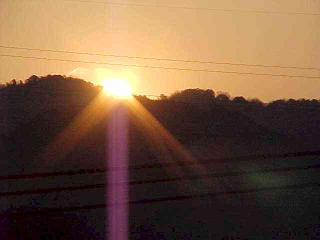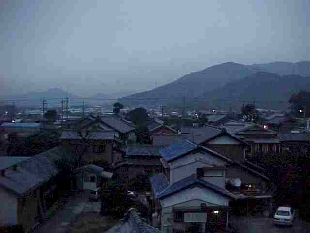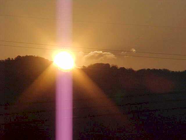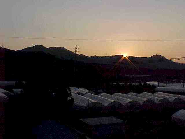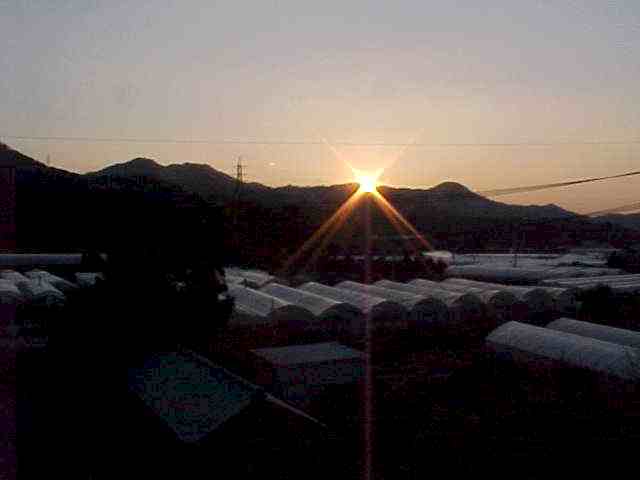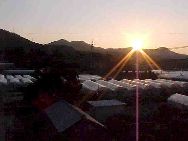 7時20分。きれいな日の出でした。 手前は,イチゴやミカンのビニルハウスです。
