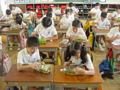 子どもたちはフロッピーディスクに記録するタイプのデジタルカメラを使っています。