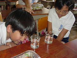 雌雄の区別は「記憶」しているので,自分が持ってきたビーカーの中のメダカ