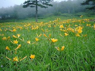![]() 高峰スキー場ゲレンデのニッコウキスゲ大群落 |
