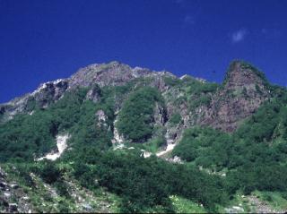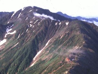 塩見小屋付近より、かえりみる塩見岳のシルエット
