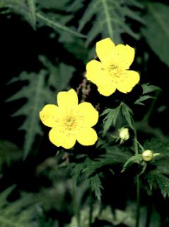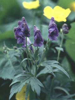 アツモリソウ(左)、トリカブト(中央)、ミヤマオダマキ(右)