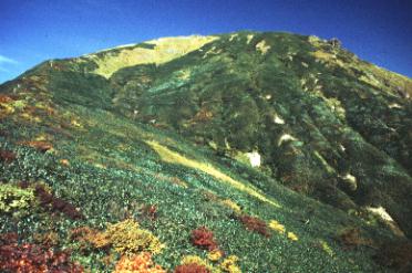 マチガ沢厳剛新道を登る。稜線に出ると紅葉が美しい。