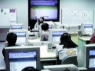 コンピュータ教室では子供達がホームページの作り方を学習していた。ここは時間ぎめ予約制である。