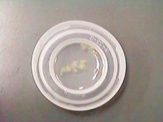 フィルムケースのふたに寒天培地を作り、ケースで保護して持ち歩く。花を採ってくるのではなく、培地の方を持ち歩き、花粉だけを採取するのだ。つい先ほど近くの公園でつけてきたというサザンカの花粉を観察してみることにした。