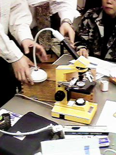 半透明なのでそのまま顕微鏡にかけられる。中村理科の誇る超小型カラーカメラが登場。カタログで見覚えのある光景だ。(下左)