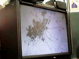 大型ビデオプロジェクターで花粉管を観察。何でもそろっていてすぐに使える。さすがは「自由実験室」。