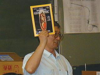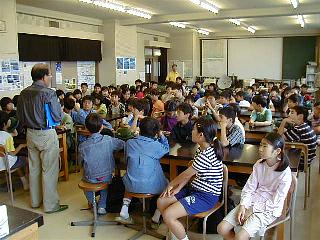 ![]() 神崎先生のまとめのお話。「本物の恐竜の卵はこんなふうに楕円形だったり、球形に近かったりします。今日作ったのはどちらかというとダチョウの卵かな。」 |