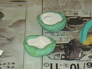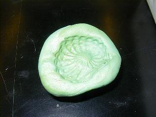 ![]() 化石をとりはずし、油粘土の雌型に中性洗剤を少し塗ります。 |