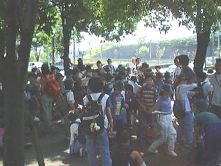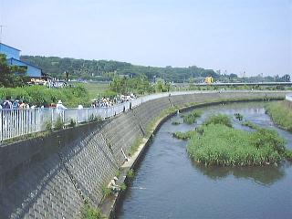 11:00ごろ引地川の川縁に出ました。川にはたくさんのコイや、フナに混じって、イナ(ボラの稚魚)の姿も見られました。