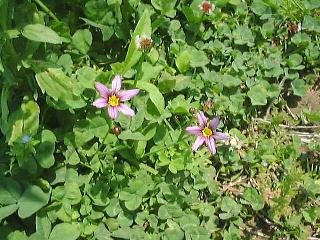 土手の足元になにげなく咲いていたニワゼキショウ。小さな雑草にもひとつひとつ名前と生態があります。