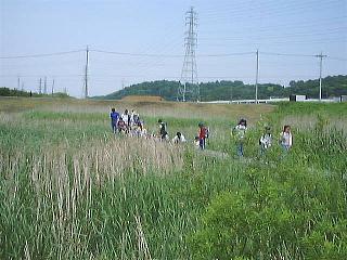 12:00、再び大庭遊水地に戻り、木道づたいに湿原の観察。ザリガニつりをしているしている子供達がうらやましそう。ここで一日ゆっくりすごすのもいいかもしれません。まわりからは野鳥の声が聞こえてきます。