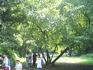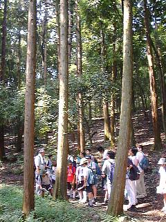 雑木林と人が植林した林の違いを観察します。植林の木は一直線に並んでいることが多いとか。