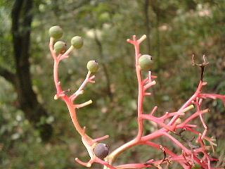 ミズキの実。赤い枝ごとたくさん落ちています。