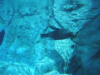 広々したプールをのびのびと泳ぎ回る、ミナミアフリカオットセイ。