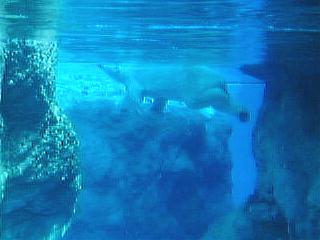 ホッキョクグマも泳ぎが上手。暑いので水に入りっぱなしです。