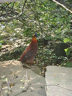 ベニジュケイのオス。すぐ足元を歩き回っています。