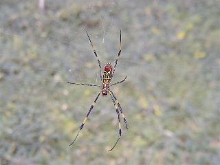 ジョロウグモのメス。おなかの赤い色が鮮やか。行く先々で見かけました。