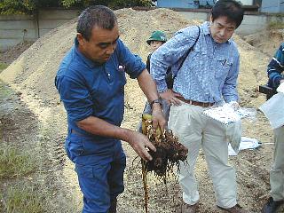 サトイモのとりかたのコツを教わり、みんなで芋掘りにチャレンジです。