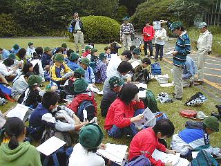 教育センターの芝生で、伊原先生と菊池先生のまとめを聞いて解散しました。