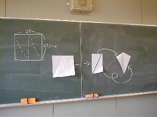 ダイヤ凧の作り方。四角い紙をこうやって切れば型紙はいりません。