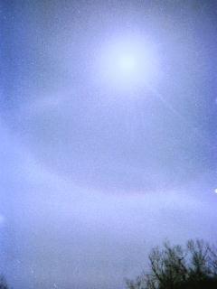 太陽に内暈(22度のハロ)がかかっていたので、「写ルンです」で撮った。