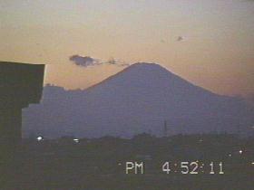 宵の明星が月によって隠される美しい現象を家庭用ビデオカメラとおもちゃの望遠鏡でとらえました。当日は快晴。絶好の観測日和でした。校舎の窓から夕焼けの西空に富士山のシルエットがきれいに見えています。南天には金星と月が並んで見えています。